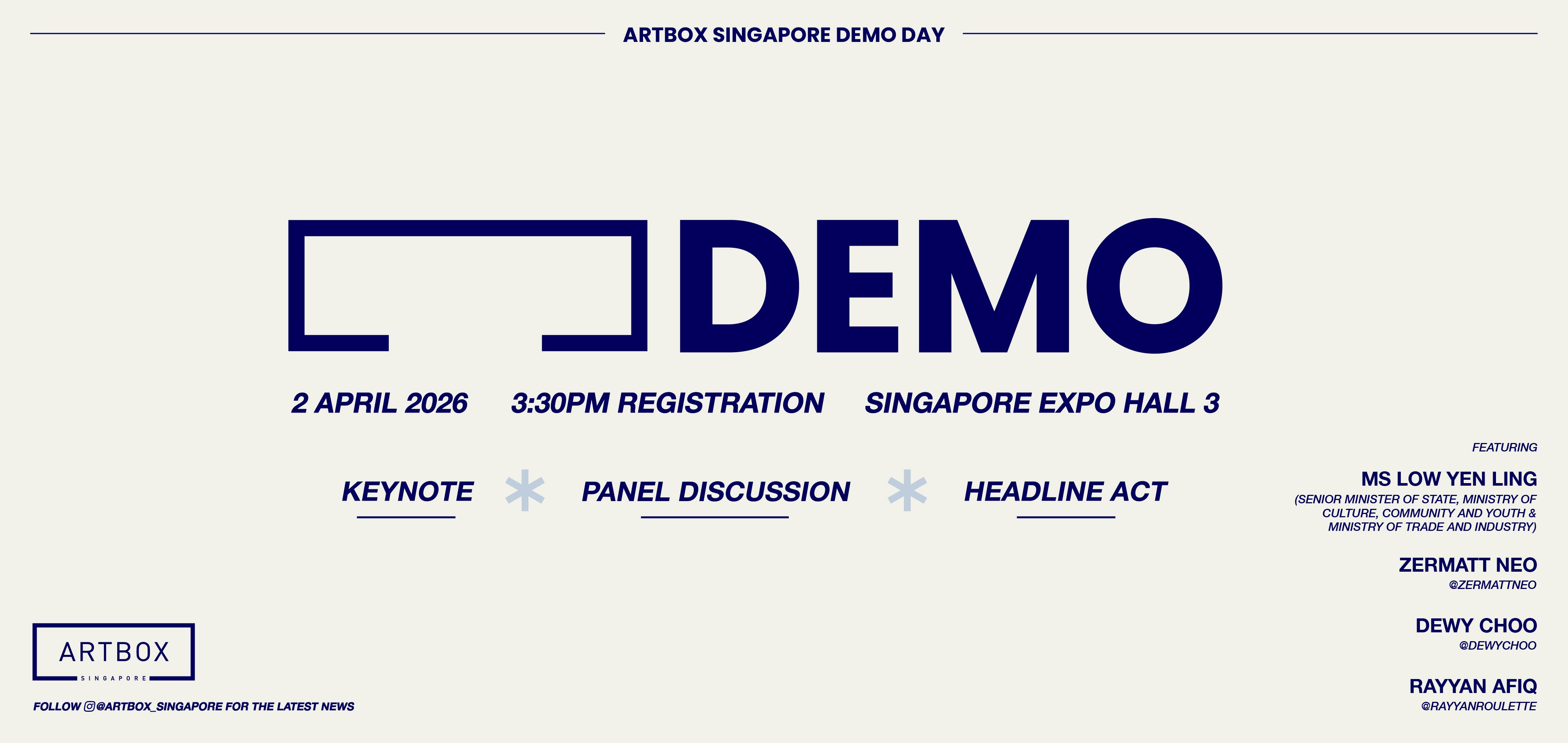 Artbox Demo is a festivalised, invitation-only showcase that spotlights creative ideas, lifestyle businesses and emerging brands for industry leaders, landlords, and government agencies' office holders. It happens 1 day before the festival itself, which mixes curated performances, media previews, panel talks, flash mentoring and networking to accelerate collaborations and pilot commercial concepts.